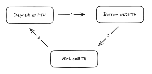 2.使用借入的 wstETH 铸造新的 ezETH,以获得 ezETH 质押收益、EigenLayer 编程激励、Renzo “Amore” ezPoints 和 AVS 再质押奖励。