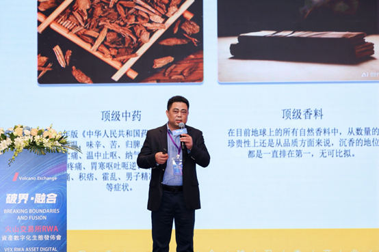 廣東新圓沉香董事長林建環分享了沉香紀年的生態資本化之路,介紹沉香作為稀缺資源的價值,以及如何通過科技創新和品牌建設,提升沉香產品的附加值和市場競爭力。